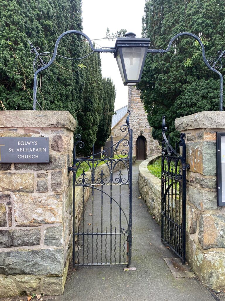 The church is associated with a St Aelhaearn’s Well a short distance away on the road to Llifaen.